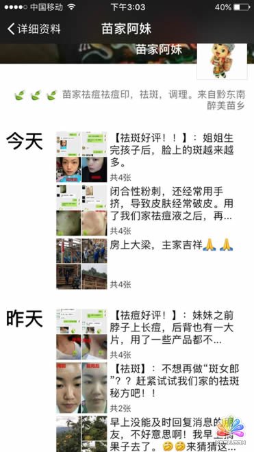 第二,個簽看著有點亂,如果是我,我會修改成(苗家祛痘、去痘印、祛斑,純中藥調(diào)理——來自黔東南最美苗鄉(xiāng)),大家注意看那個最美他寫成了醉美,客戶一看就覺得你做事情不謹(jǐn)慎不認(rèn)真。